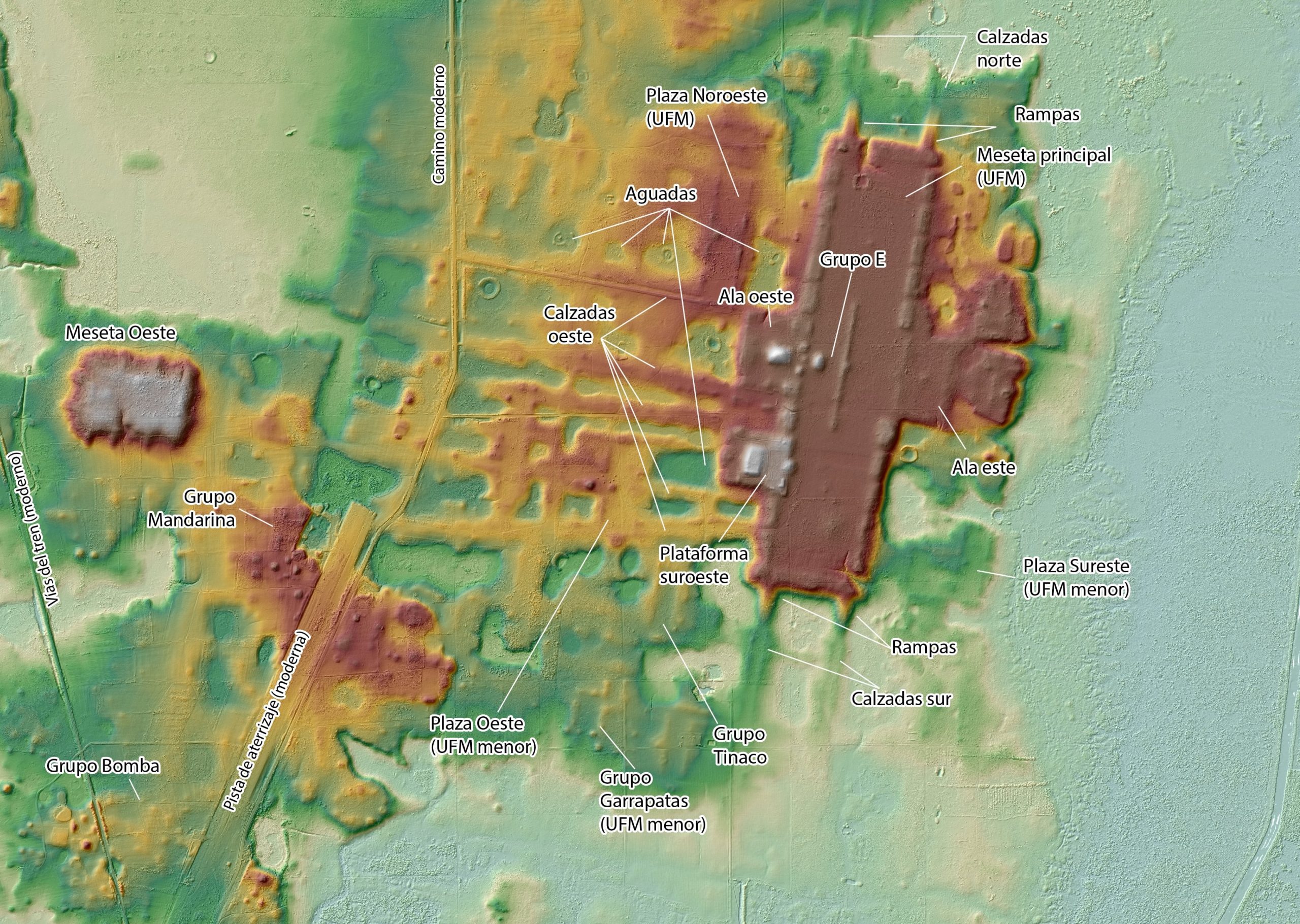 Hace unos años se descubrió en el sur de México una de las mayores construcciones de Mesoamérica y la mayor de la región maya. Se trata de una enorme plataforma levantada entre 10 y 15 metros del suelo, con 1.413 metros de norte a sur y 399 metros de este a oeste que debió funcionar como gran plaza. El descubrimiento fue posible gracias a la tecnología LIDAR, un láser que desentierra casi todo lo oculto. Ahora, en el centro de la estructura, han encontrado una representación del Universo tal y como lo concebían aquellas gentes de las que no se sabe si eran mayas o no. Además, al ampliar el foco del LIDAR, han hallado otro cosmograma aún más grande, cuyas terminaciones se alejan kilómetros del centro. Los autores del descubrimiento, cuyos detalles publica Science Advances, defienden también que, a diferencia de otros grandes monumentos, el de Aguada Fénix, lo levantaron cientos de personas de forma voluntaria.